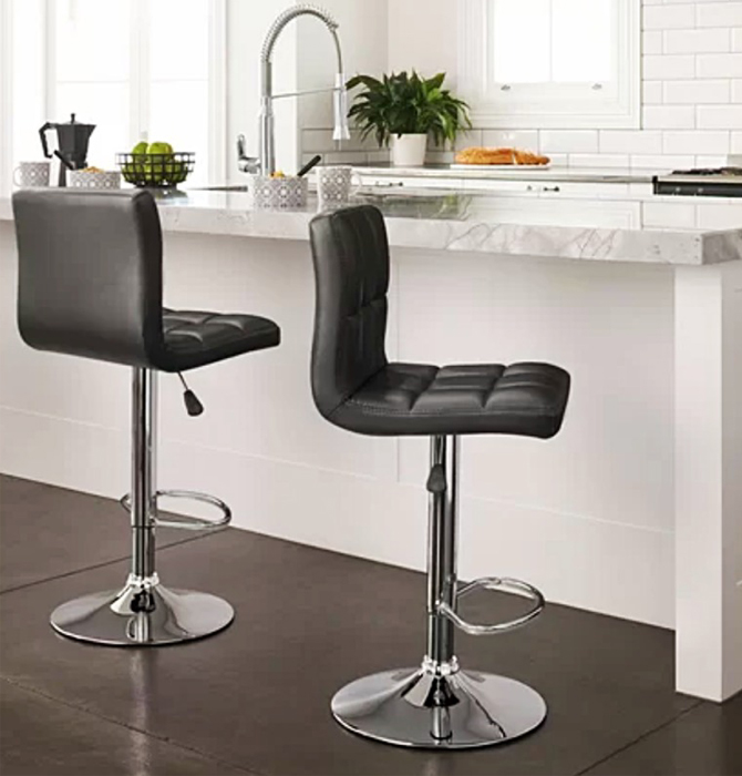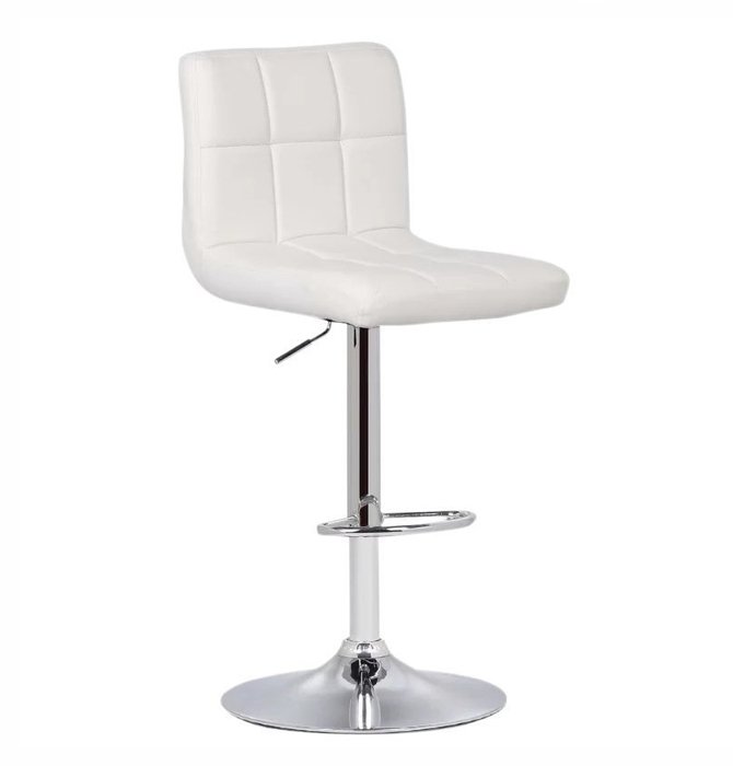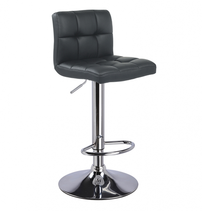 Taburete tapizado en eco cuero. Base plato cromada, regulable en altura.