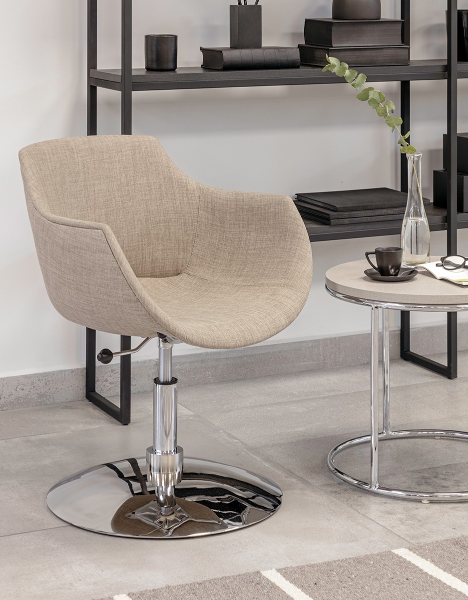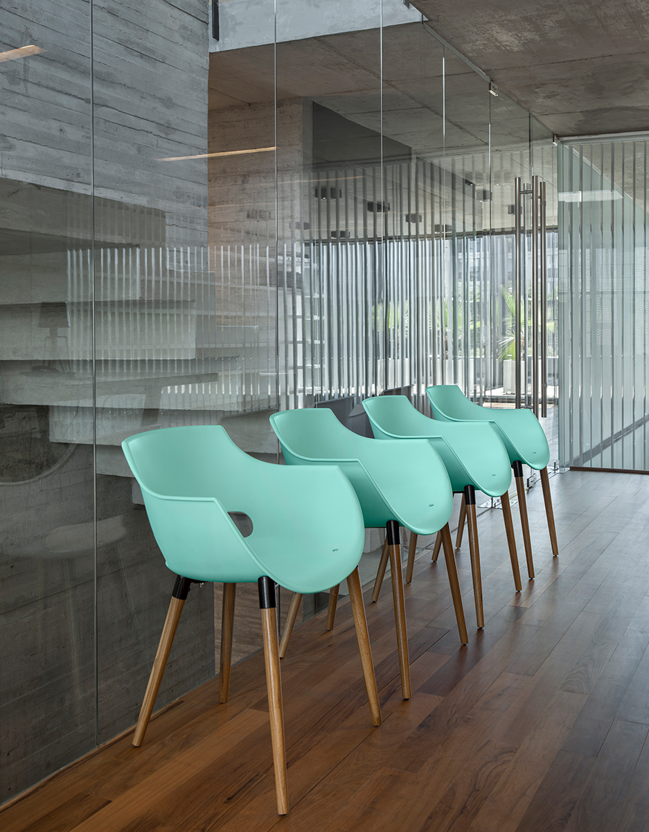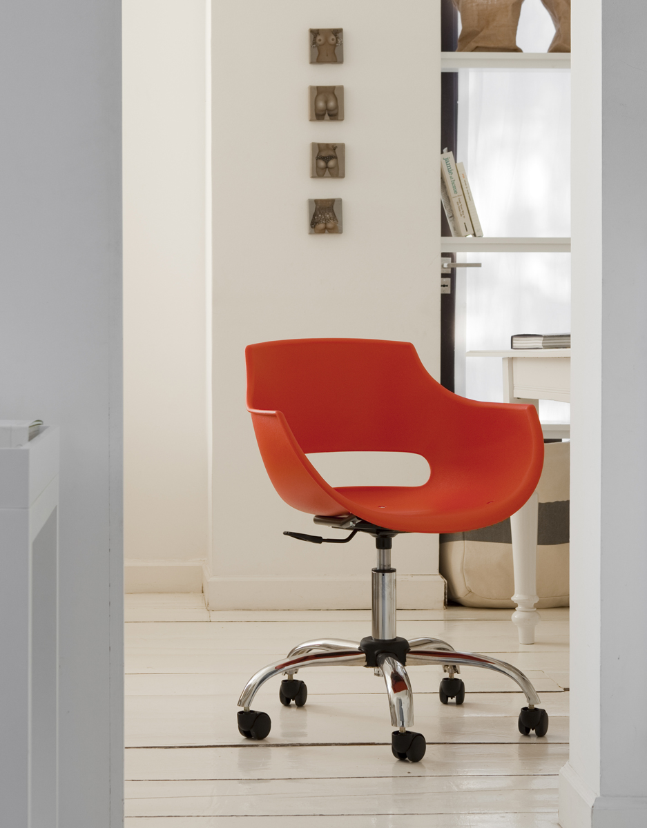 Joven y actual. Silla de usos múltiples, casco inyectado en polipropileno. Apilable. Base cuatro patas de caño cromado con regatones. Opcional: Giratoria, Tapizada, Cuatro patas Wood. Plato.