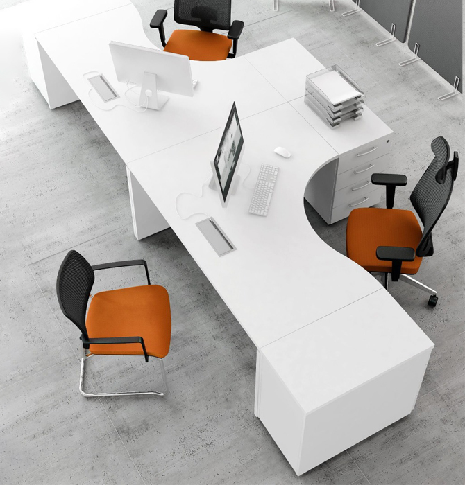 - Escritorio en Isla. Isla de trabajo concéntrico de 4 puestos para una mejor adaptación a los espacios disponibles y diferentes flujos de trabajo. Tapa, patas y laterales en aglomerado melamínico en 18mm. Cantos tapas con ABS 2mm, resto con ABS 0,45mm. Consultar opciones de medidas. Opciones: 2 cajones/ 4 cajones/1 cajón y box para CPU/ Pantalla divisora en melanina de 18 mm.
