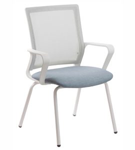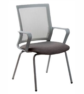 Silla de 4 patas inyectada negra (opcional blanco y gris). Respaldo tapizado en tela de red mesh negra. Apoya brazos integrados. Asiento de goma espuma de 28kg. con interior madera multilaminada de 12mm.