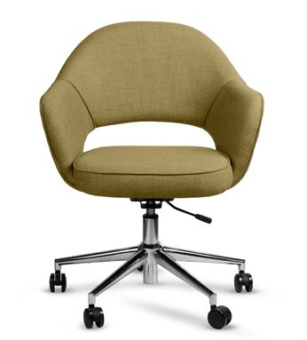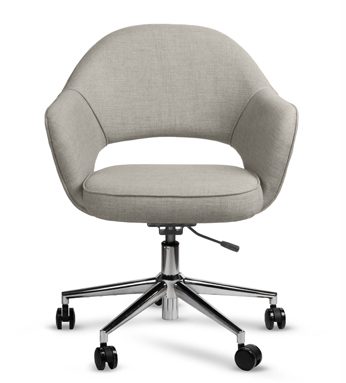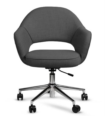 Una silla clásica tapizada con regulación neumática para que trabajes con total comodidad. Asiento de goma espuma de alta densidad y base cromada.