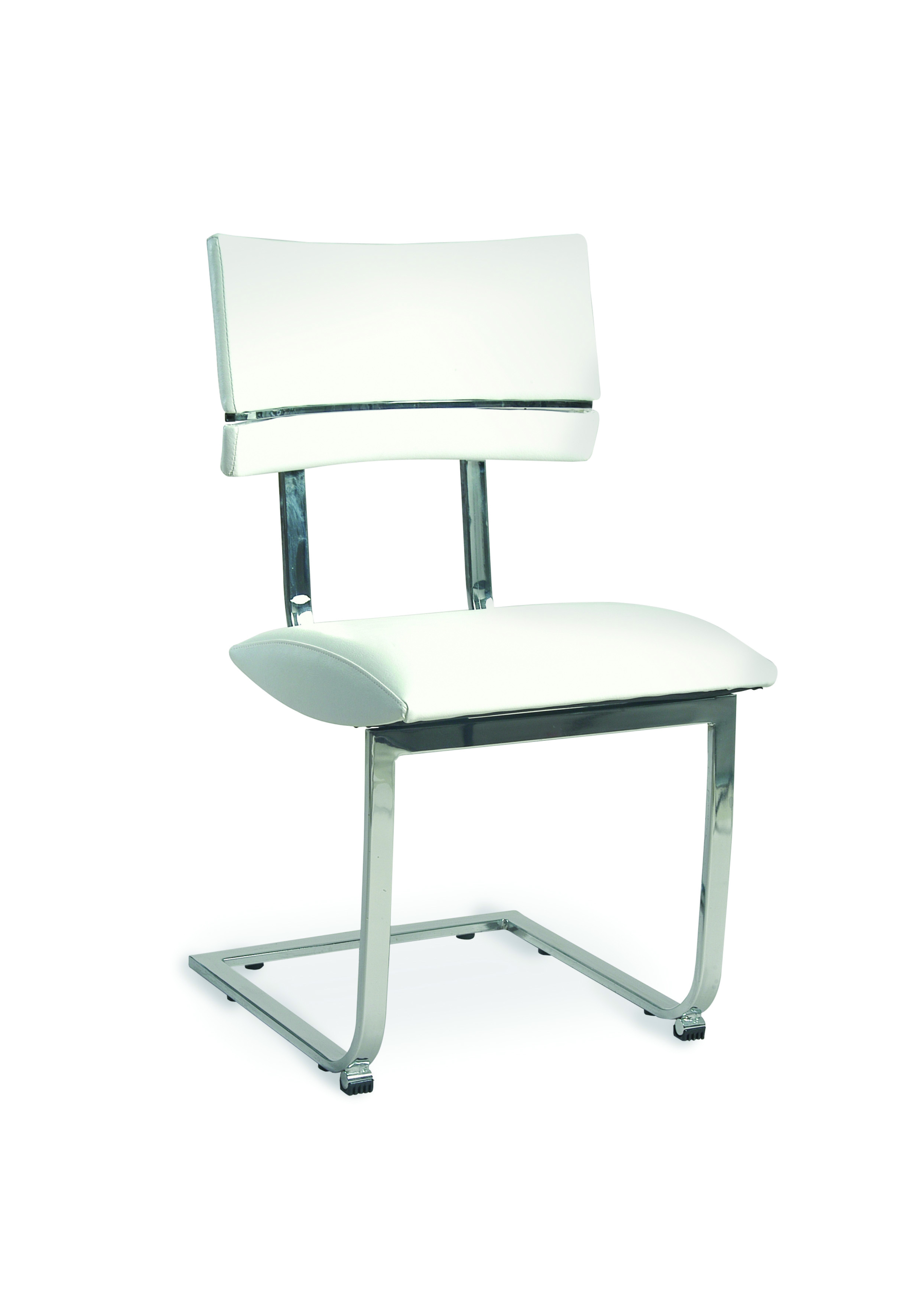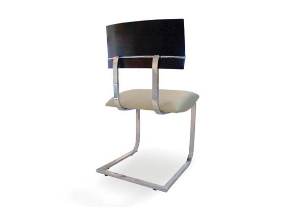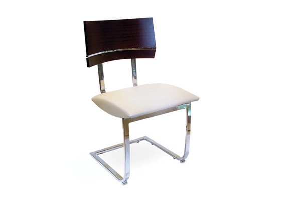 Silla de estructura metálica, asiento y respaldo tapizado. Las terminaciones son a elección. Medidas: 48 x 54 x 87 cm. Opción. Respaldo madera lustrado.